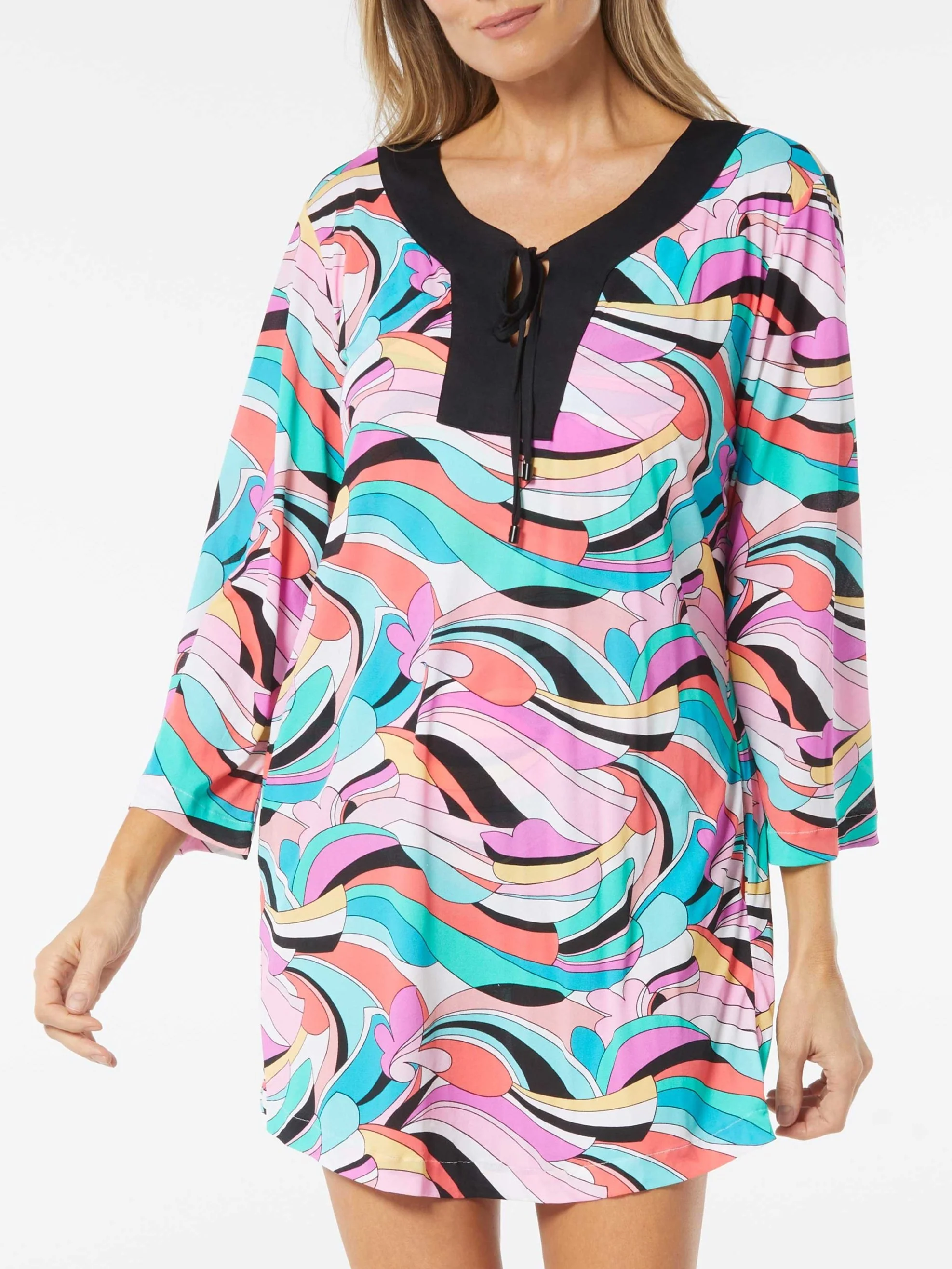 The sun is shining bright this season with Beach House! Get in the convertible and take the freeway to Palm Springs circa 1970’s, because with these vintage inspired prints, we’re ready for the ride! With coordinating prints and solids in pieces that are designed to mix and match, this collection is a breeze for vacation lovers in size range 6-24W.