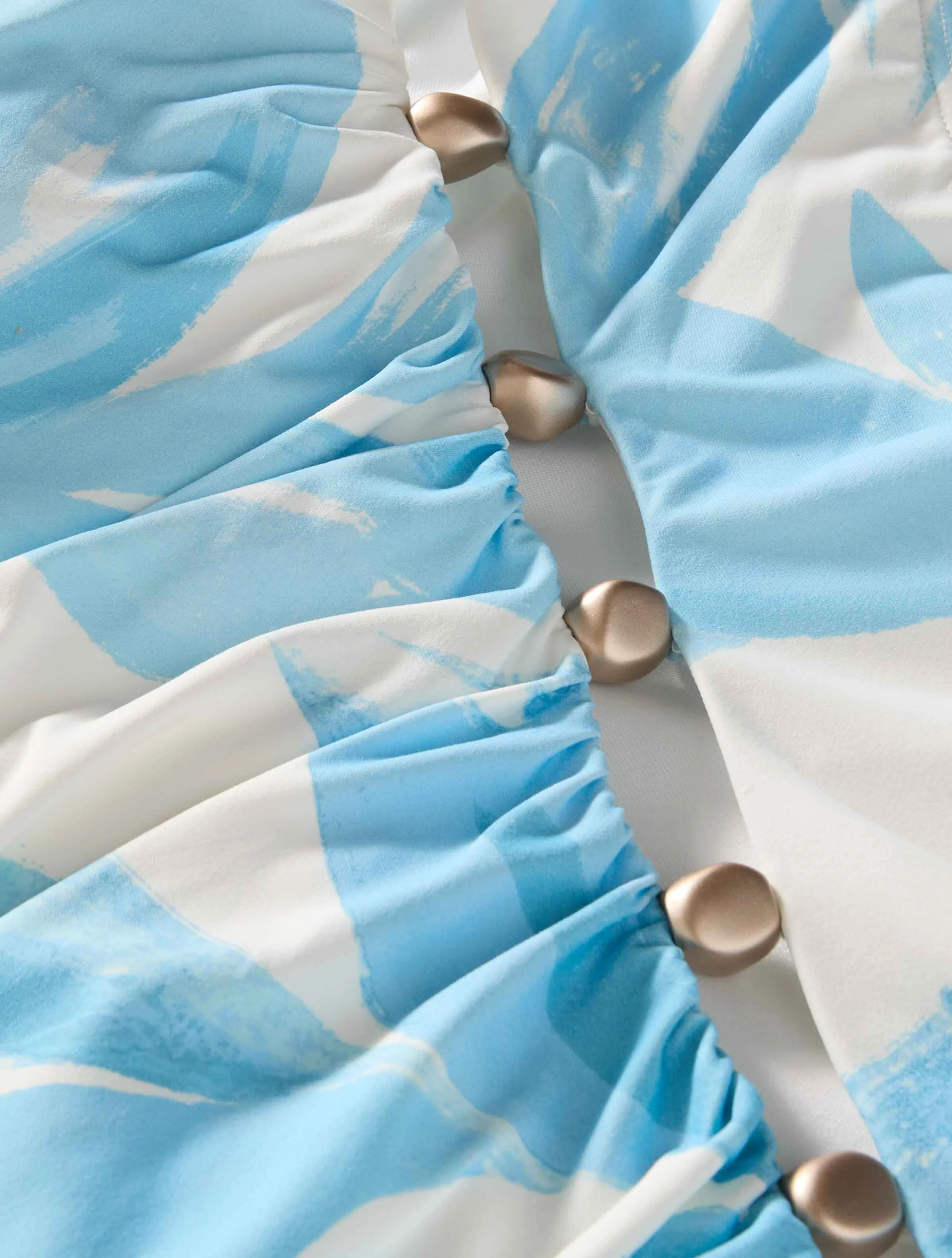 Soft watercolor florals and sun-washed hues with a burst of vibrant citrine define this collection, blending feminine prints with modern, sculpting silhouettes. From bandeau bikinis to statement one-pieces, each style reflects the continued trend of elevated swim that transitions seamlessly from beach to resort wear.