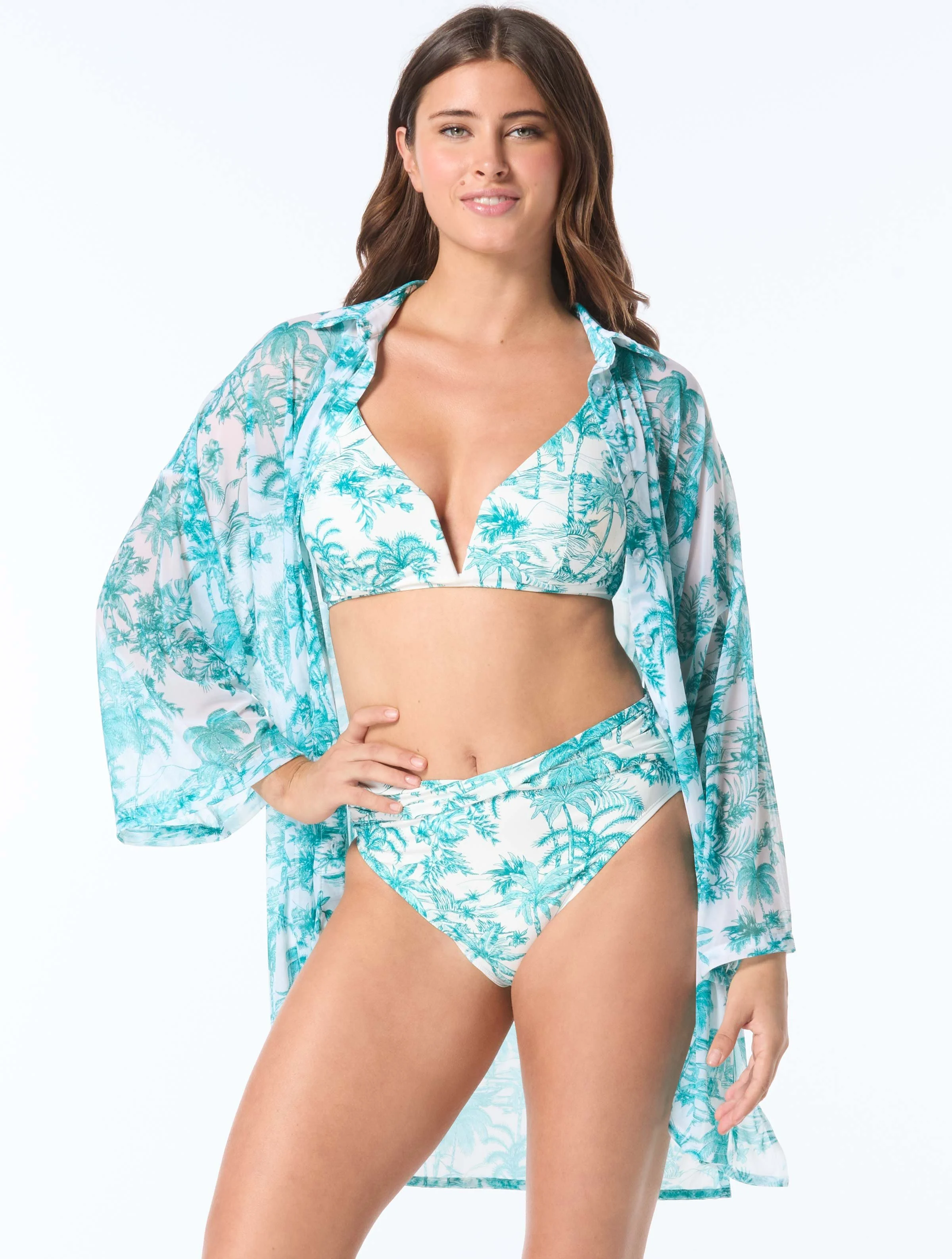 Coco Reef transports us to sun drenched paradise where the sun meets the sea. Inspired by lush palm trees, exotic flowers and azure waters, this collection captures the essence of tropical escapes. A blend of bold colors and drama radiate warmth and adventure in every outfit.