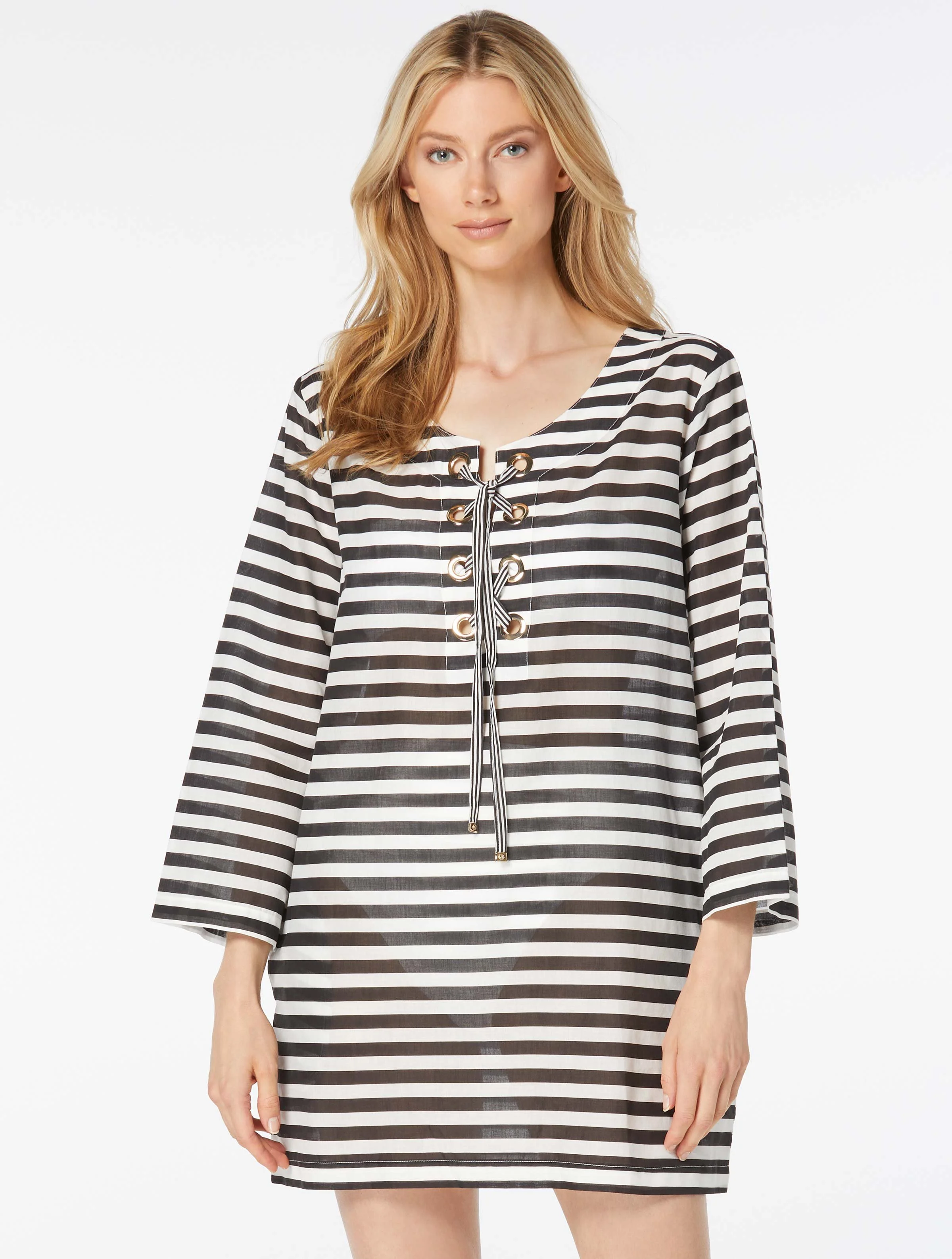 Simple silhouettes are finished with luxe Empire hardware to make a statement in your wardrobe. From one-pieces with keyhole cut-outs to high-waisted bikinis, floral prints are mixed with solid pops of color and elegant stripes to make a fearless moment.
